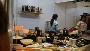 120 designers exhibited, a collection of jewelry, clothes, home decor, footwear, gift items, party wear, Indian formal, Indian casual, western wear, fusion wear, kids wear, bags and shoes, tarot card, authentic jewelry, and accessories at the expo.