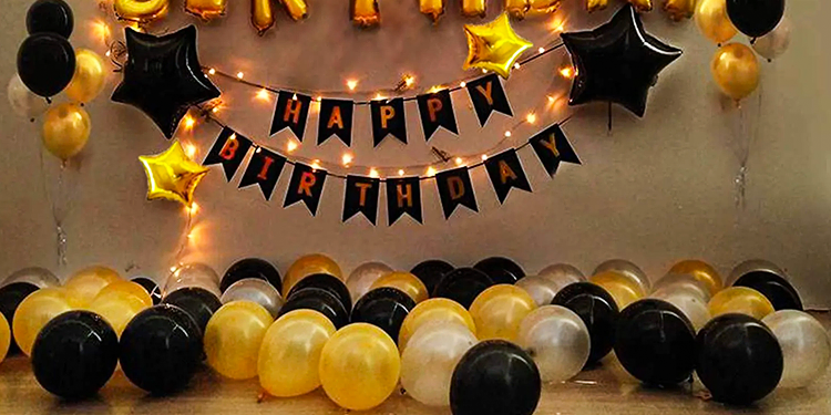 Starry Birthday Surprise · Lightening Heart Decor · Golden Black Romantic Birthday Decor · Mixed Color Theme Birthday Decor · Golden Themed Birthday Magical Balloon